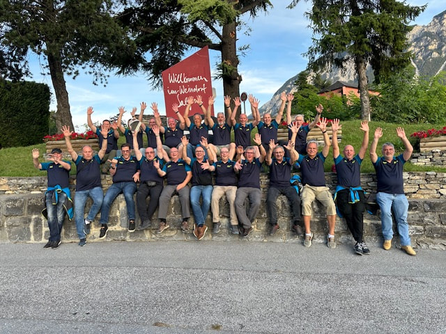 Das Salz-Bergwerk in Bex war dann unser erster offizieller Sightseeing Point. Wie im Wallis üblich, musste als «Welcome Drink» erstmals ein Gläschen Weisswein her. Vielleicht auch, um die Platzangst einzelner Besucher etwas zu unterdrücken. Denn im Mini-Stollenzüglein ging es anschliessend für die Bergwerkführung ca. 1500 Meter in den Berg hinein. So viel Salz regt auch ordentlich den Appetit an. Zum Mittagessen im Alp Art Hotel in Monthey wartete ein leckerer Hackbraten mit Kartoffelstock und Bohnengemüse auf uns. Ja – man kann sagen, bei der Männerriege ist noch niemand verhungert. Mit vollen Bäuchen durften wir uns im Car etwas zurücklehnen, denn nun war unser Chauffeure gefordert. Auf dem Weg zur Grand Dixance passte oft keine Hand mehr zwischen Felsen und Car. Doch er meistertet das mit Bravour. Check-In im Hotel Le Riz am Fusse der gigantischen Staumauer. Eindrücklich, was da mit Menschenhand geschaffen wurde. Um etwas mehr Hunger zu bekommen – es wartete ein feines Raclette à discrétion mit Vorspeisesalat und einer üppigen Walliserplatte auf uns – wanderten einige auf der Seite der Staumauer hoch und wieder runter. Für die etwas weniger «geläufigen» stand die Gondel bereit. Bei gemütlicher Baraggenstimmung und gutem Essen, neigte sich der erste Tag dem Ende zu. Am Samstagmorgen, nach dem zMorgenessen, ging es um 10:30 Uhr mit unserem ersten Tages-Programmpunkt los – der Führung ins Innenleben der Grand Dixance. Estebán erläuterte uns das Tunnelsystem und gab uns Hintergrundinformationen zum ganzen Bauwerk. Unglaublich, was vor 75 Jahren und während rund 15 Jahren Bauzeit, erschaffen wurde. Weiterfahrt nach Saint Léonard. Im Restaurant Treize Étoiles wartete ein herrliches Roastbeef mir Pommes Frites auf uns, natürlich auch wieder mit einem Gläschen Wein. Gestärkt, oder leicht überfressen, ging es bei einem kurzen Spaziergang zum unterirdischen See, wo wir eine kleine Bootsfahrt machten. Zum Glück waren wir bereits gesättigt, so dass niemand auf die glorreiche Idee kam, einer der eingesetzten und grosskalibrigen Regenforellen zu fischen. Einmal durch den Souvenir-Shop und wieder zurück zum Car, war der nächste Programmpunkt, der Zimmerbezug im Hotel Arkanum in Salgesch. Neuer Ort, gleiche Zimmerbesetzung. Ein paar Meter vom Hotel entfernt und einmal ums Eck, liegt die Weinkellerei Kreuzritter, bei welcher wir herzlich zur Degustation empfangen wurden. Jeder Wein hat seine Geschichte und der Kellermeister ein unglaubliches Wissen. Auch wenn die Weine nicht alle restlos überzeugten, war die Degustation ein echtes Highlight. Nach so viel Wein muss auch mal wieder feste Nahrung her. Zum Nachtessen gab es, bei gemütlicher Atmosphäre im hoteleigenen Restaurant, ein feines Kalbsgeschnetzeltes mit Nüdeli. Samstagabend, und bestimmt noch nicht Zeit zum schlafen gehen. Auf dem Dorfplatz hallte die fetzige Musik vom Alleinunterhalter und die Jugend und Cervelat Prominenz vom Dorf war auch Vorort. Da liegt zumindest noch ein Schlummertrunk drin. Doch für ein paar unter uns reichte das noch nicht. Nachdem die Nachtruhe auf dem Dorfplatz einkehren musste, fand die Party im nahegelegenen Jugendtreff in den Reben ihre Fortsetzung. Doch mit dem Alter kommt angeblich auch die Vernunft. Um ca. 02:00 Uhr war definitiv Schluss. Sonntag, Tag der Rückreise. Nach einem reichhaltigen Frühstück ging die Fahrt weiter nach Hohtenn. Etwas verspätet, da zuerst noch ein Portemonnaie gefunden werden musste. Doch mit vereinten Kräften ging das recht zügig. Auch die Fahrt nach Hohtenn stellt sich etwas schwieriger heraus. Nach Umwegen und ca. einer Stunde Verspätung, kamen wir am Startpunkt unserer Wanderung an. Diese Führte an wunderschönen Schluchten und Wasserkanälen vorbei, hin bis nach Ausserberg. Das verdiente Mittagessen gab es beim Ankunftsort auf der Sonnenterasse des Restaurant Bahnhof. Gesättigt und etwas müde von der Wanderung und den unzähligen Eindrücken, stand die Heimfahrt auf dem Programm. Das Rhone Tal hinunter, vorbei an Montreux, Freiburg und Bern, ging die Rückreise etwas stockend voran. Doch um 20:30 Uhr kamen wir wieder sicher am Ausgangspunkt an, dem Feuerwehrmagazin in Wegenstetten. Ein herzliches Dankeschön geht an unsere Organisatoren und Reiseleiter Markus und Sven. Gemeinsam mit Kaufmann’s Schwarb Reisen, welche uns bei unserem Walliser Wochenende, sicher von Ort zu Ort chauffiert haben.